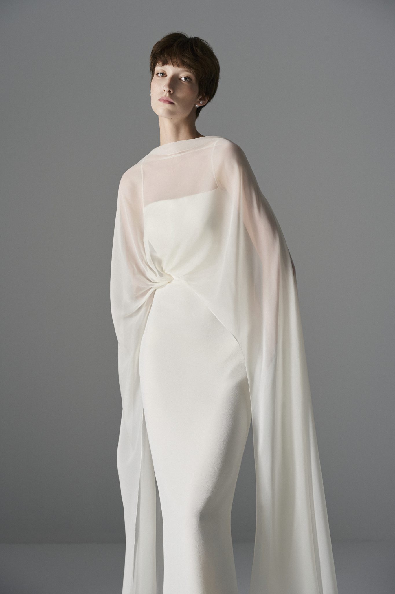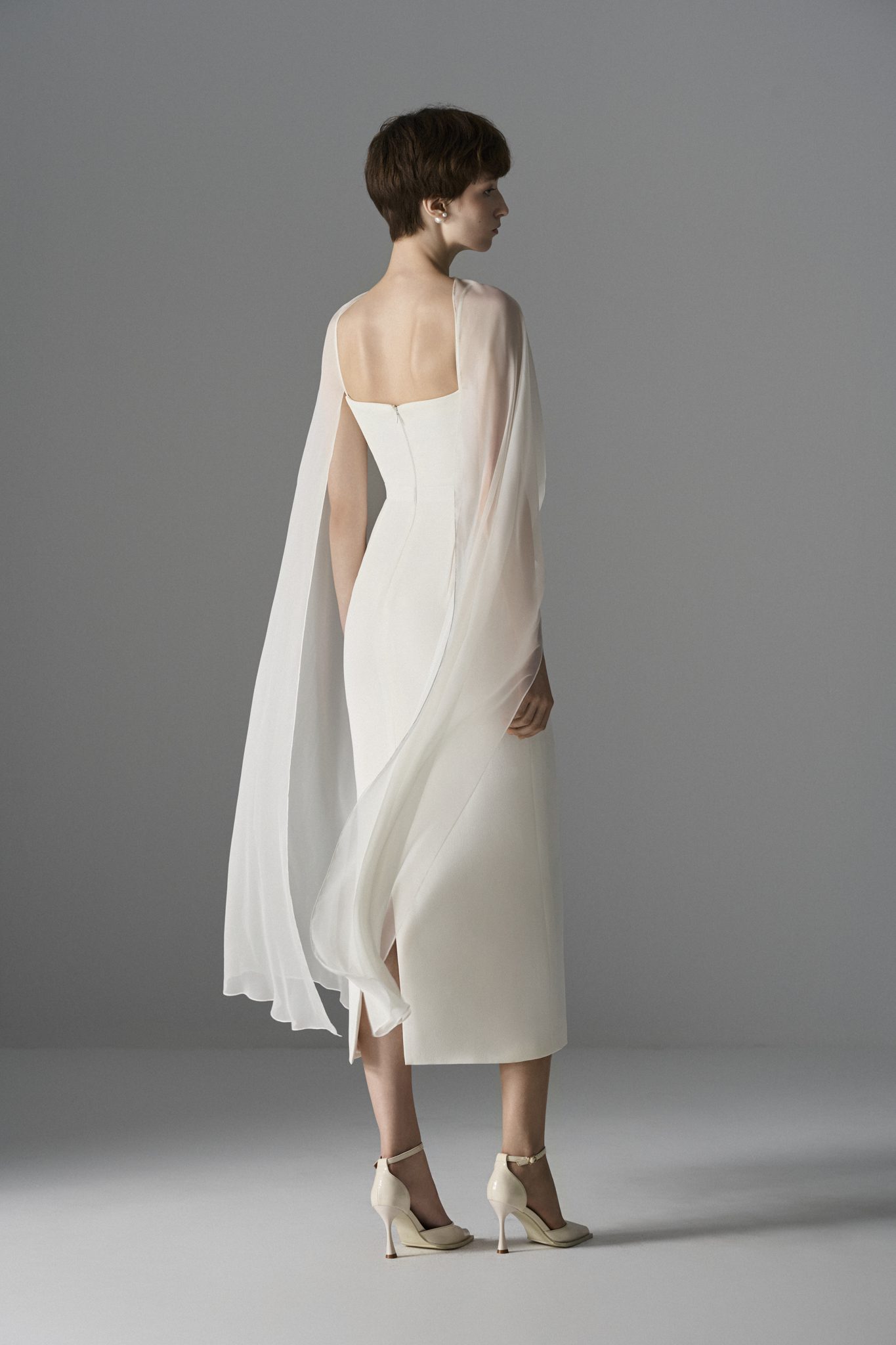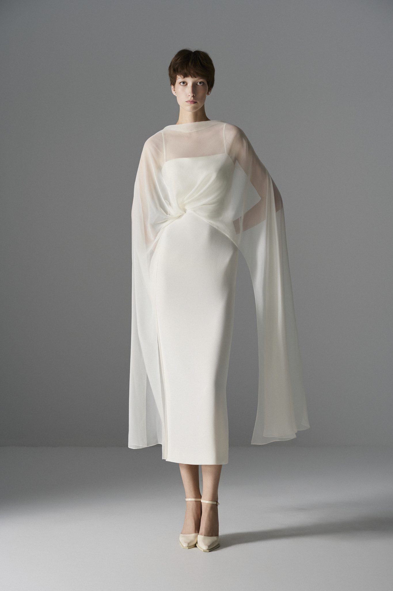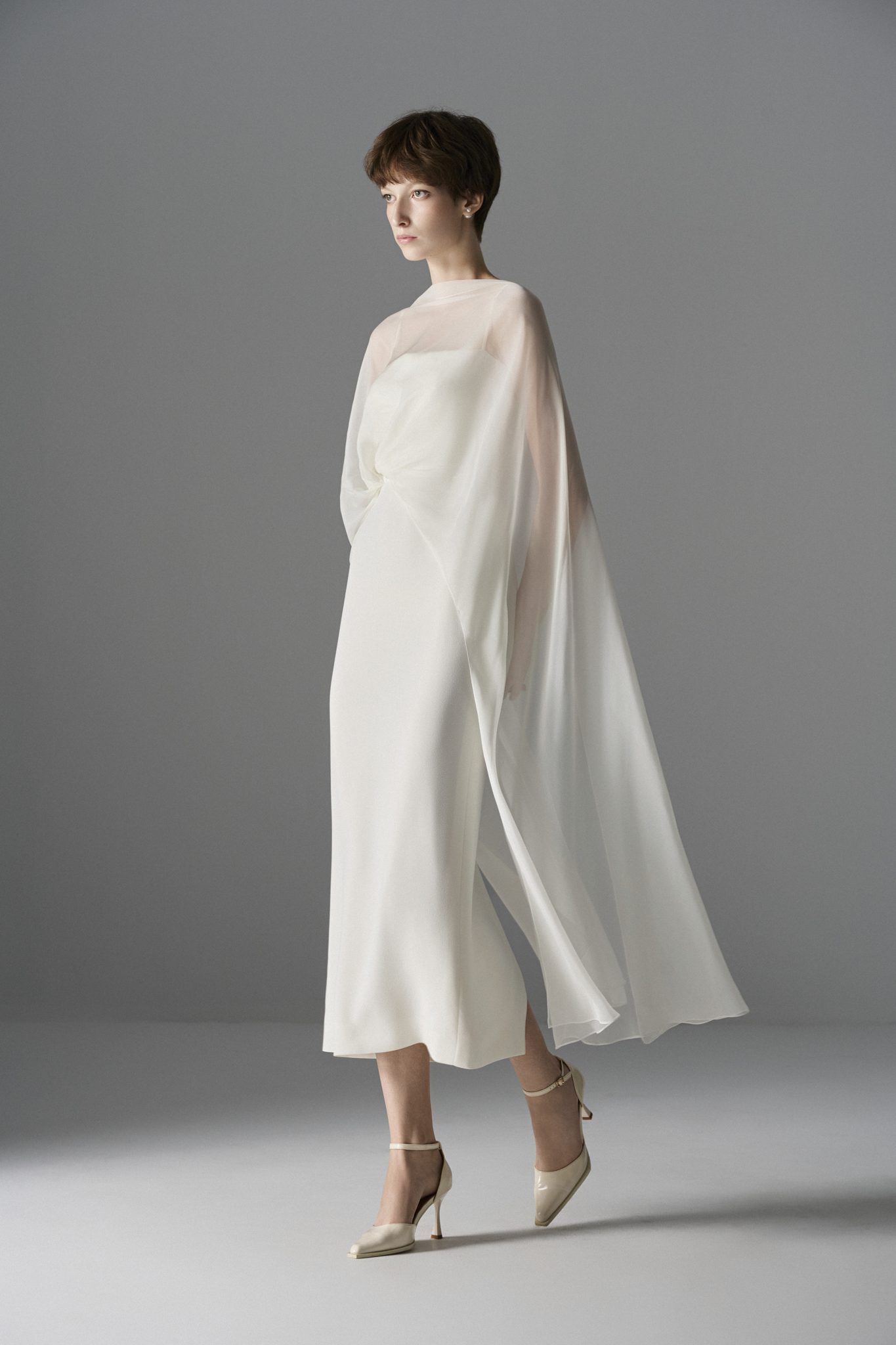 – The base dress features spaghetti straps. – Sheer cape made of chiffon, which flows gracefully from the neckline. – Handmade in Vietnam Composition: 80% crepe, 20% chiffon Shoulder to hemline 130 cm/51.1 in Model wears size S